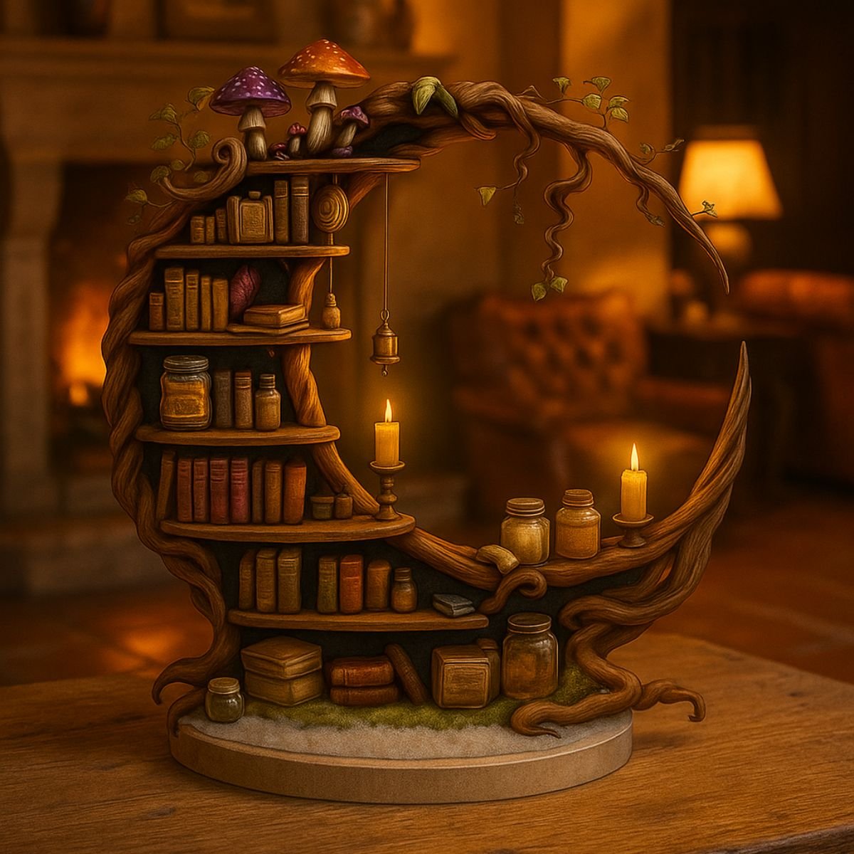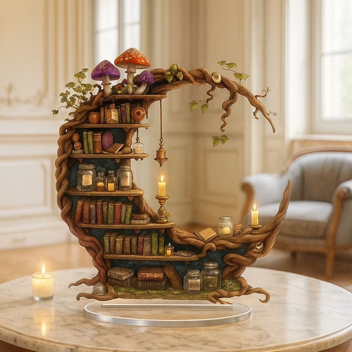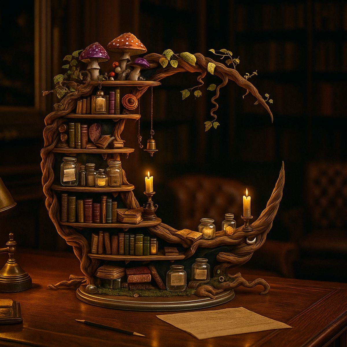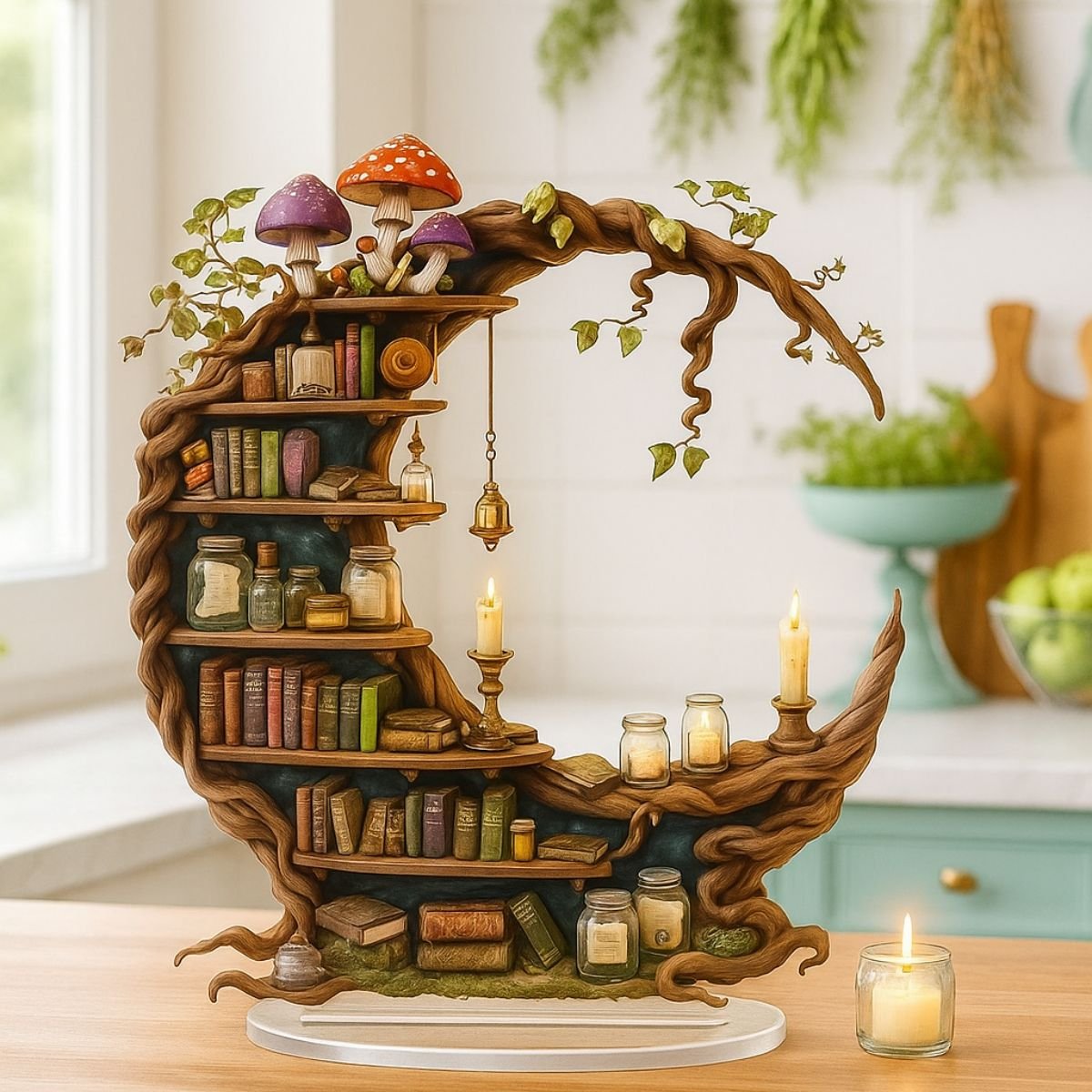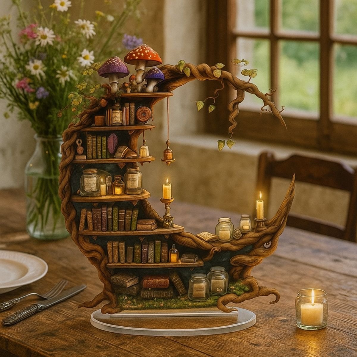 • Includes miniature books and mushroom accents for whimsical charm