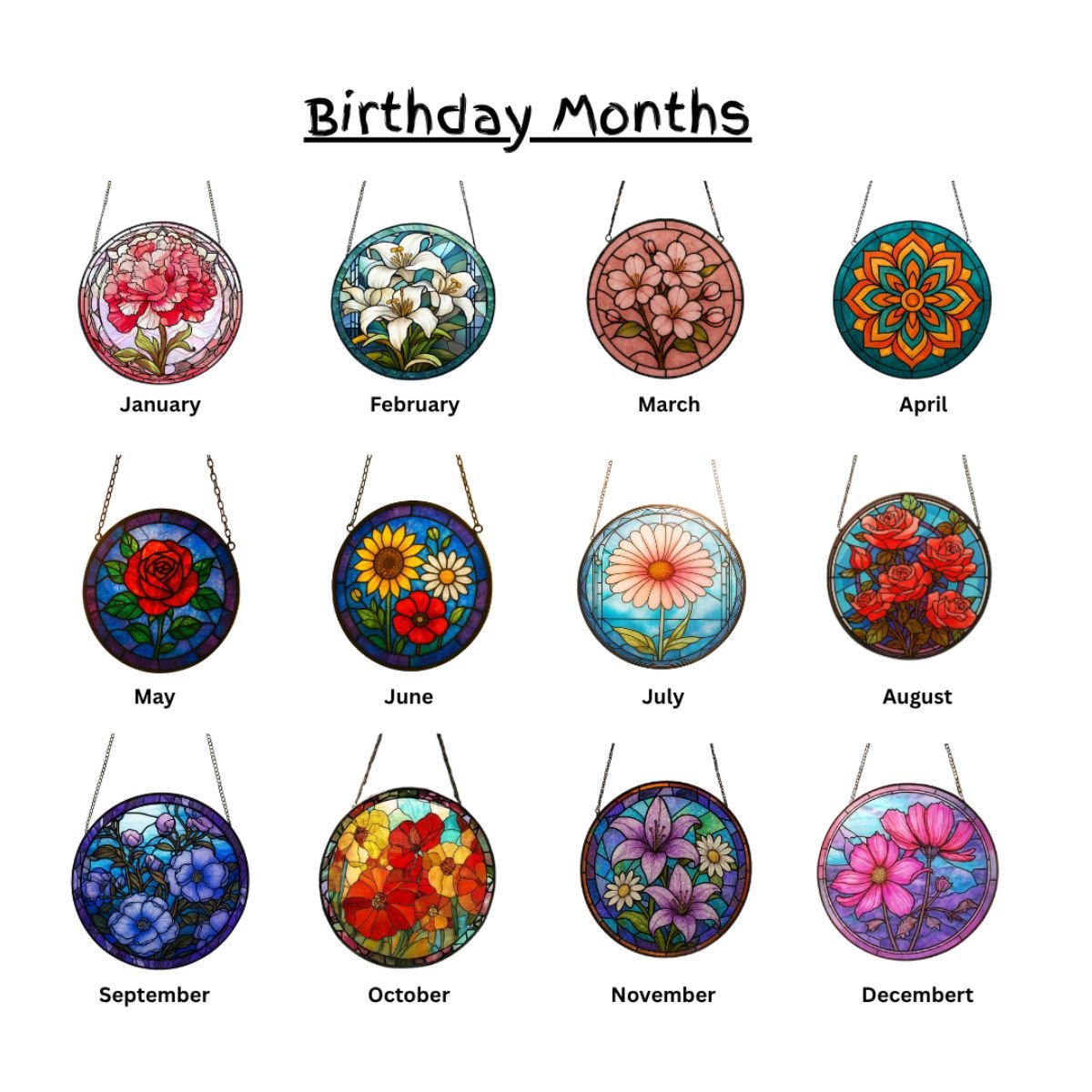 Be the first to review “Handcrafted Floral Glass Suncatcher – 12 Months Colourful Window Hanging Decoration”