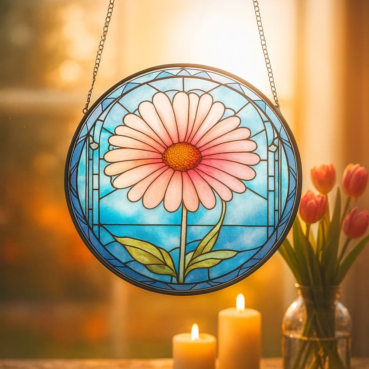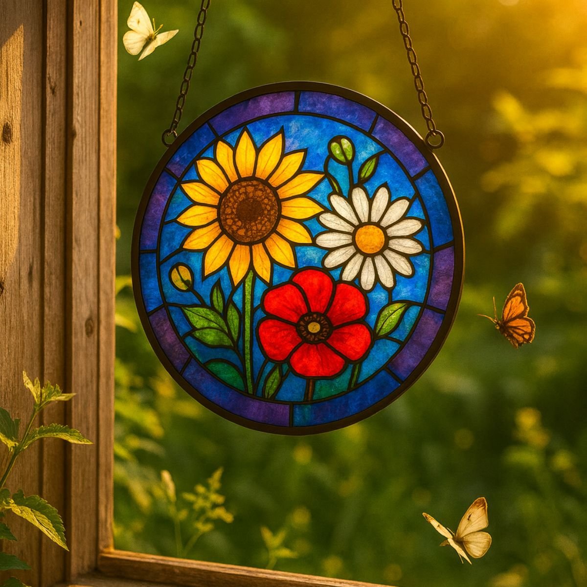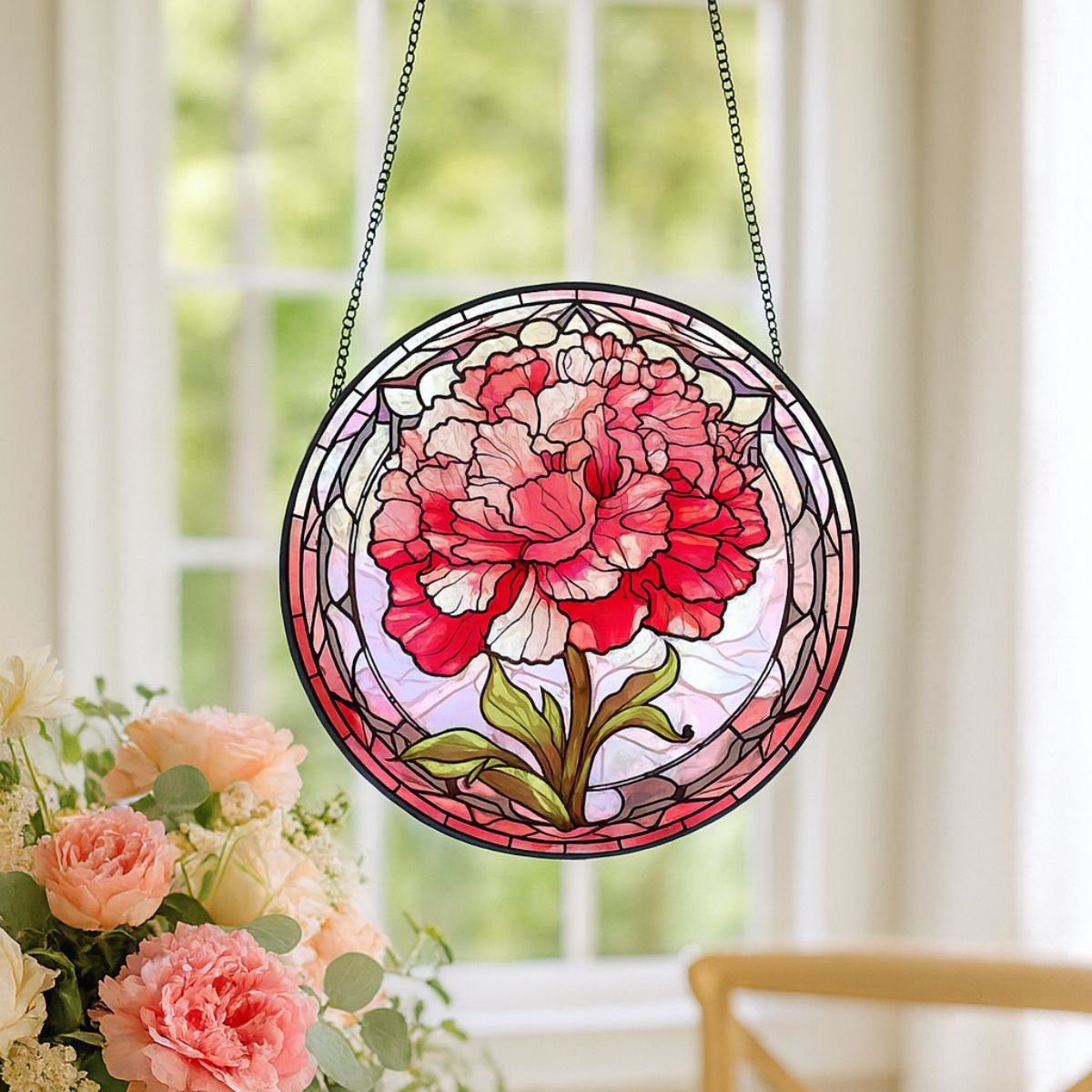 Handcrafted Floral Glass Suncatcher – 12 Months Colourful Window Hanging Decoration