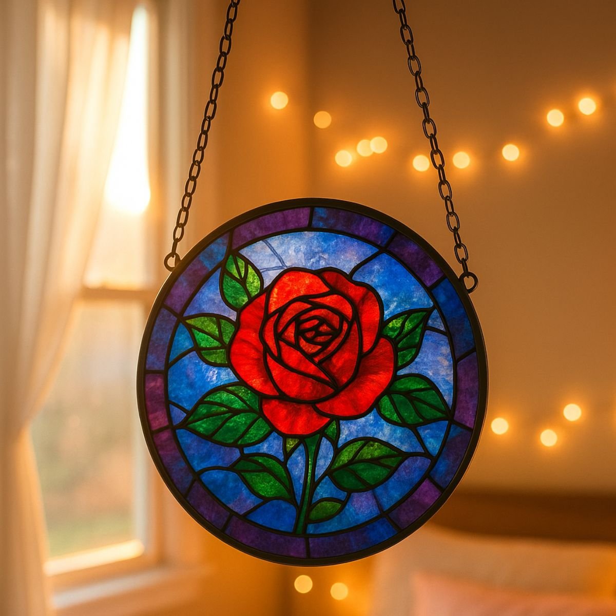 This suncatcher is more than a decorative accent – it’s a versatile piece that suits a wide range of settings. Place it in your living room to brighten mornings, in your office to inspire creativity, or in a meditation space to enhance mindfulness. Its rainbow spectrum adds warmth and joy to any environment, while the floral design resonates with themes of growth, renewal, and harmony. Lightweight yet sturdy, it’s easy to hang and safe for families. It also makes a thoughtful gift for birthdays, anniversaries, housewarmings, or festive occasions, offering both artistry and sentiment in one.