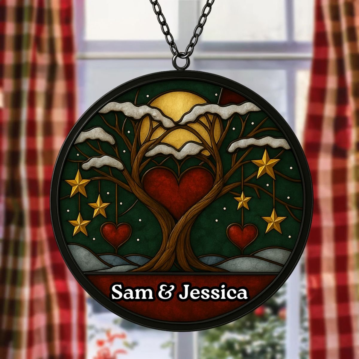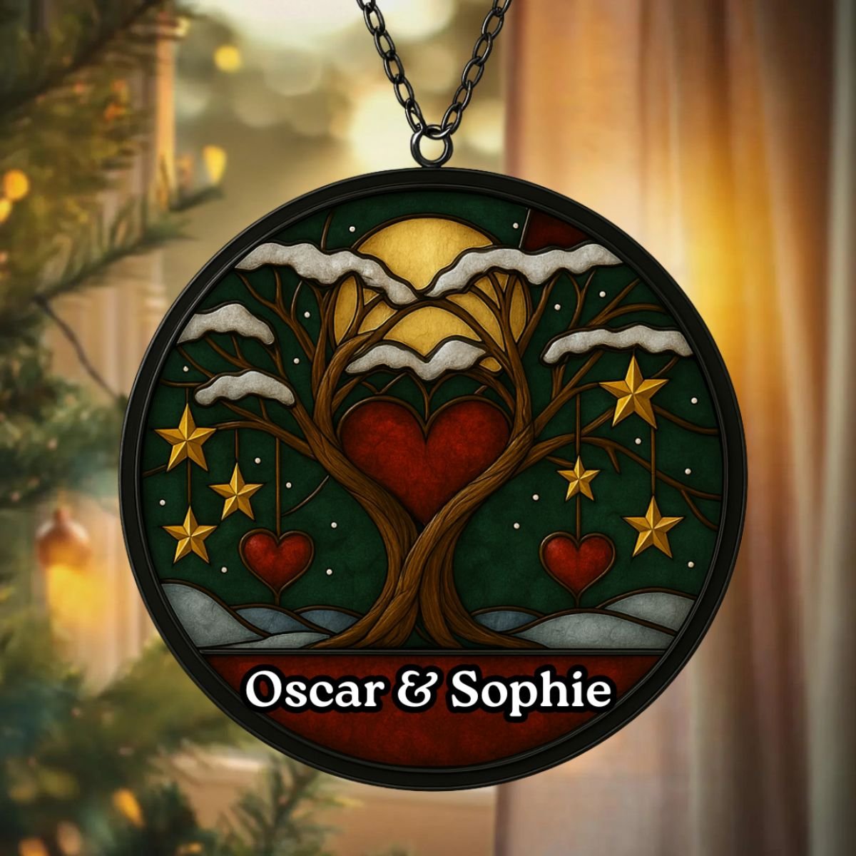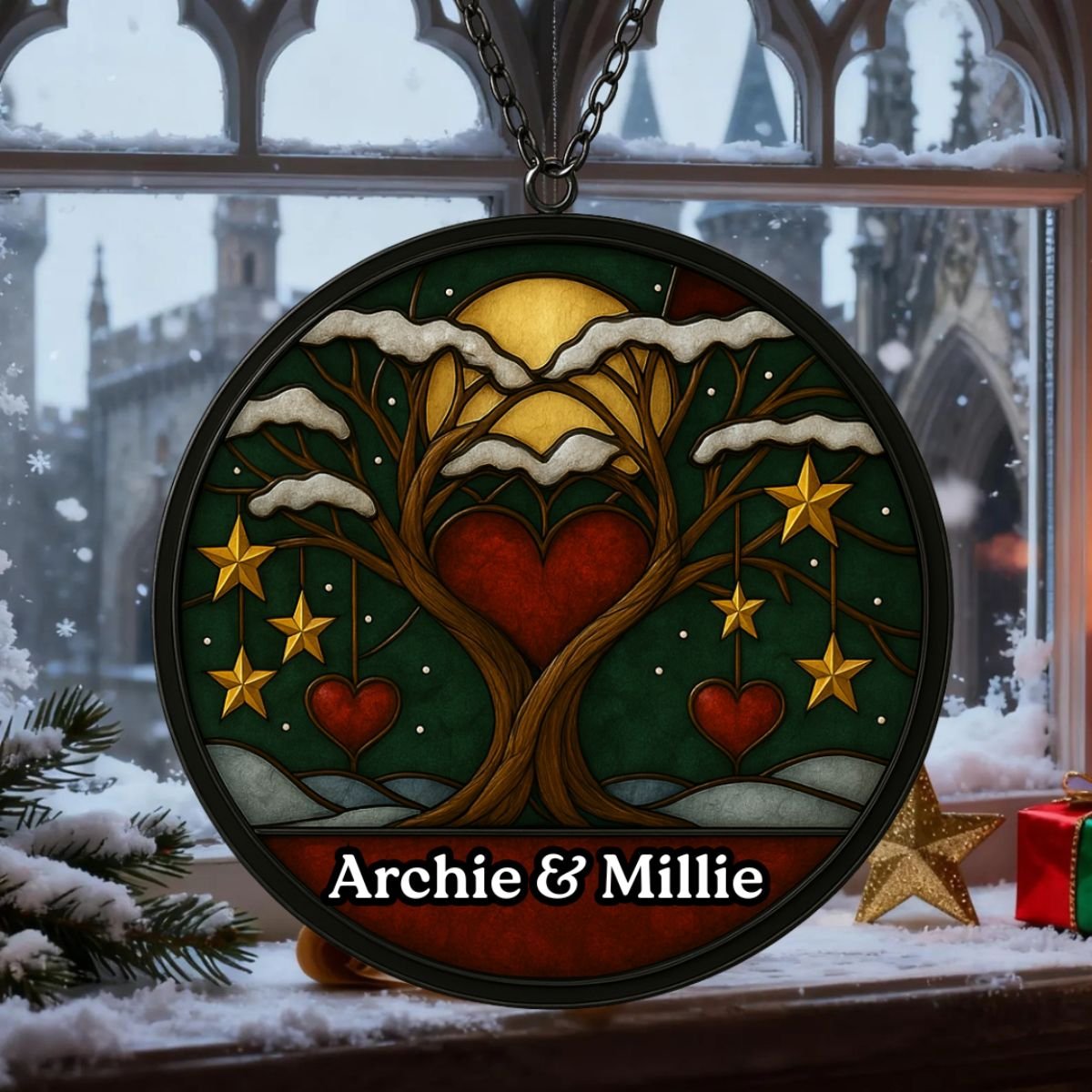 Made from high‑quality acrylic, this suncatcher combines durability with elegance. Unlike glass, it won’t easily break, making it practical for everyday use. The glossy finish ensures vibrant colours that remain striking over time, while the personalised couple’s names add timeless appeal. Each piece is carefully packaged to arrive safely, ready to hang and enjoy. With its blend of artistry and resilience, the Personalised Christmas Couple Suncatcher is a keepsake that will continue to uplift your space year after year, keeping festive memories alive in light and colour. Its thoughtful design ensures it stands out as both a decorative accent and a meaningful tribute to love and Christmas joy.
