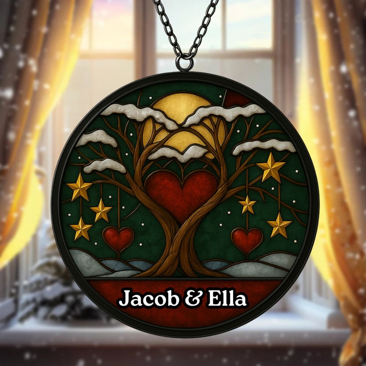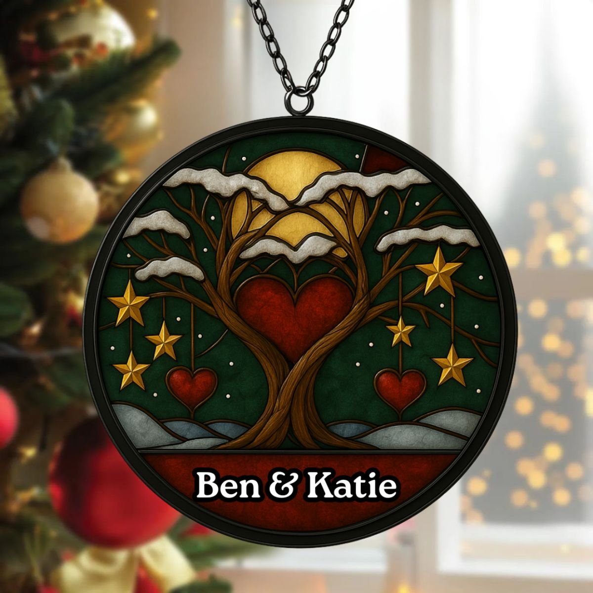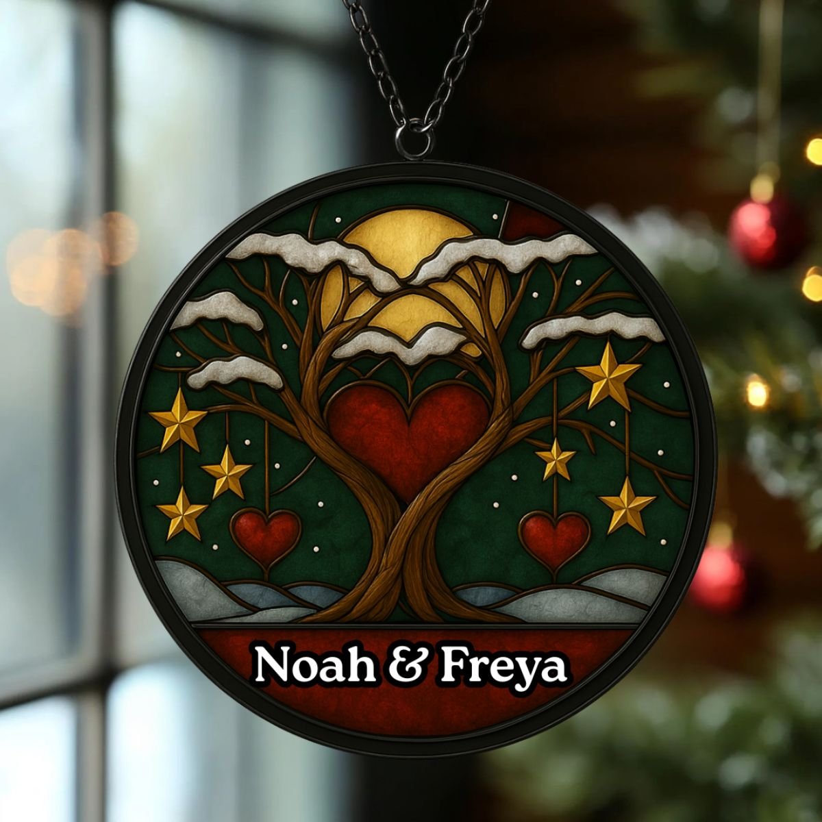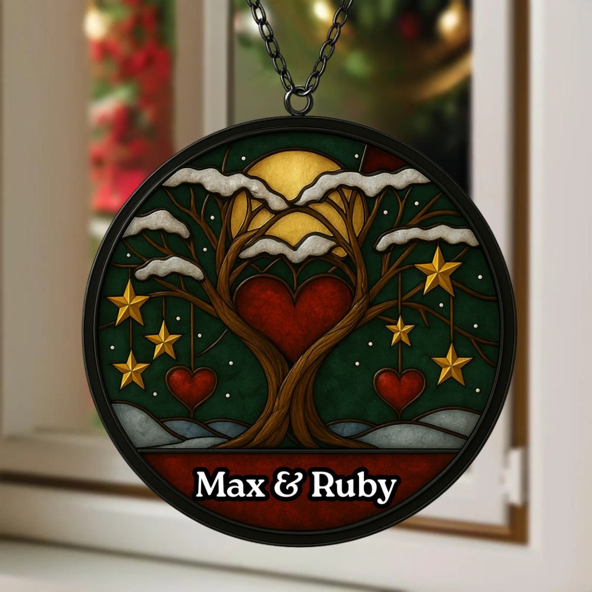 Made from high‑quality acrylic, this suncatcher combines durability with elegance. Unlike glass, it won’t easily break, making it practical for everyday use. The glossy finish ensures vibrant colours that remain striking over time, while the personalised couple’s names add timeless appeal. Each piece is carefully packaged to arrive safely, ready to hang and enjoy. With its blend of artistry and resilience, the Personalised Christmas Couple Suncatcher is a keepsake that will continue to uplift your space year after year, keeping festive memories alive in light and colour. Its thoughtful design ensures it stands out as both a decorative accent and a meaningful tribute to love and Christmas joy.