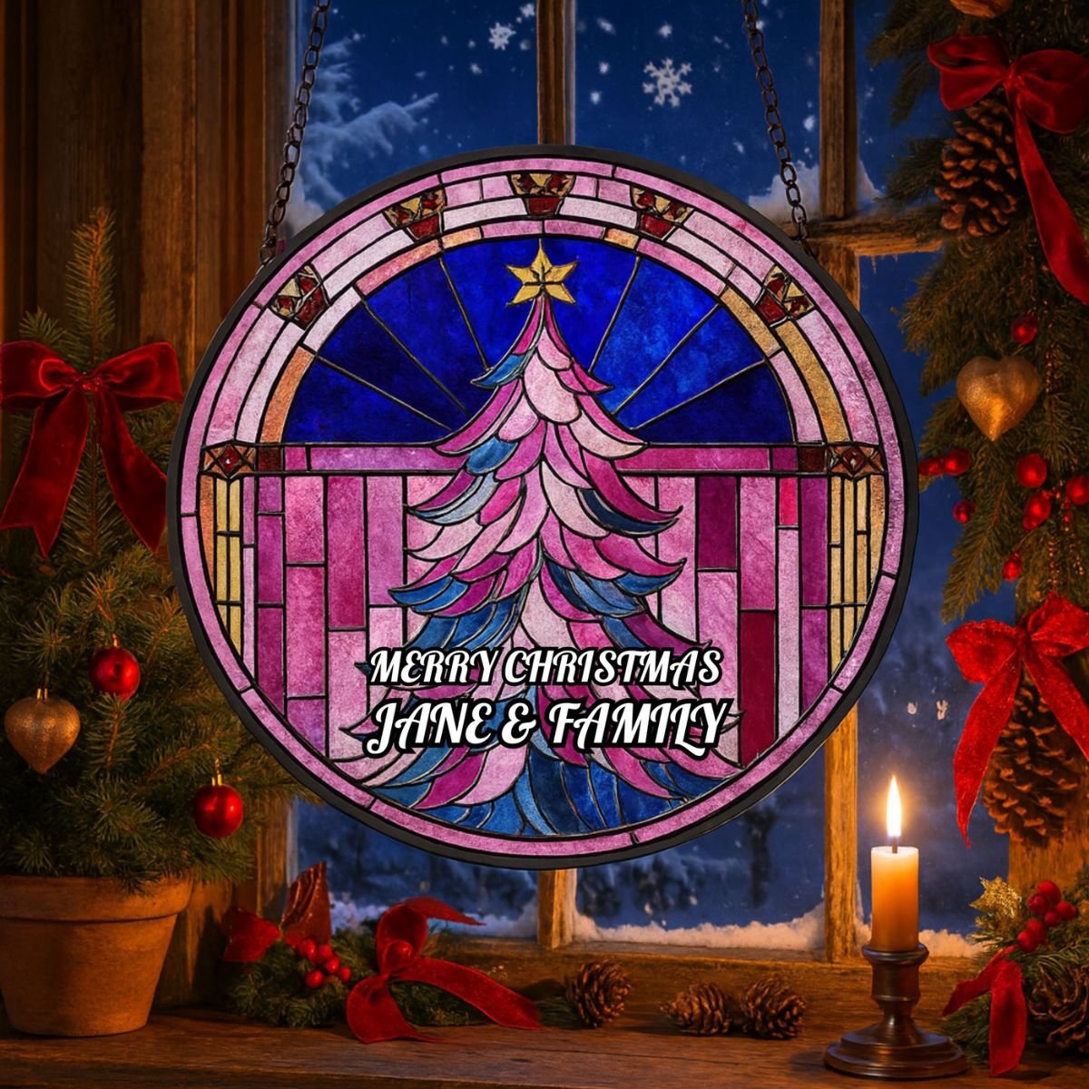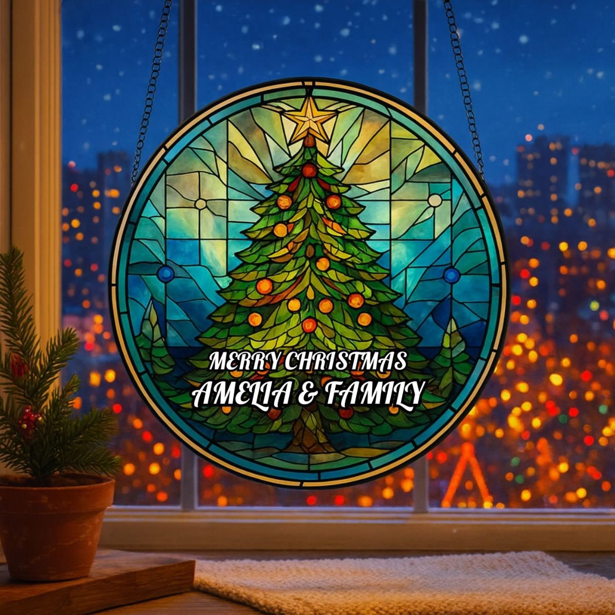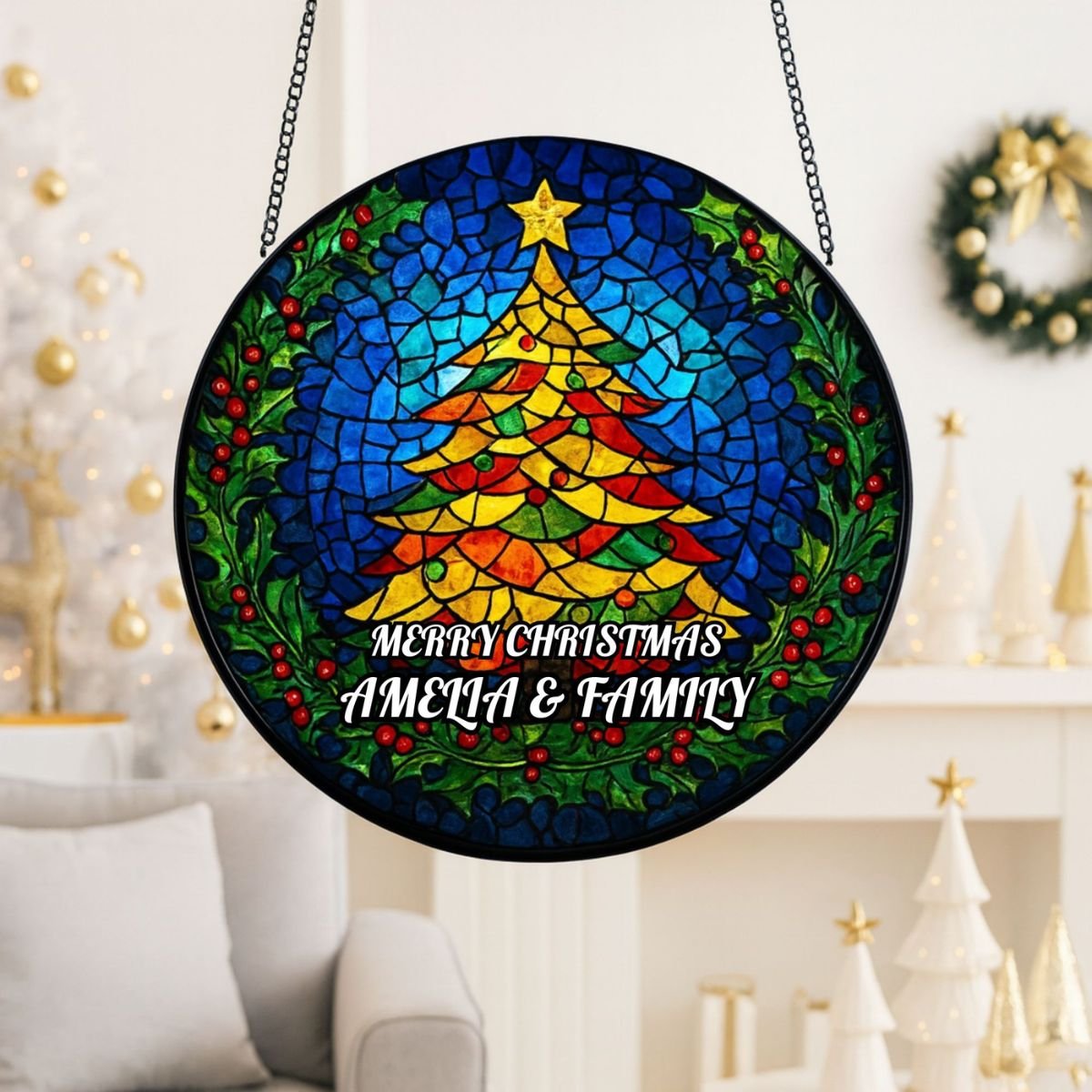 Made from high‑quality acrylic, this suncatcher combines durability with elegance. Unlike glass, it won’t easily break, making it practical for everyday use during the busy festive season. The glossy finish ensures vibrant colours that remain striking year after year, while the Christmas tree motif adds timeless appeal. Each piece is carefully packaged to arrive safely, ready to hang and enjoy. With its blend of artistry and resilience, the Stained Glass Christmas Tree Suncatcher is a keepsake that will continue to uplift your festive décor, becoming part of your family’s holiday traditions for years to come. Its thoughtful design ensures it stands out as both a decorative accent and a meaningful tribute to Christmas joy.